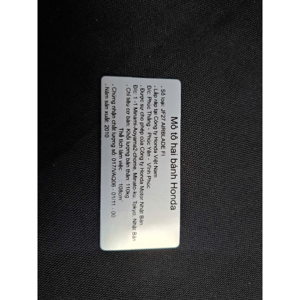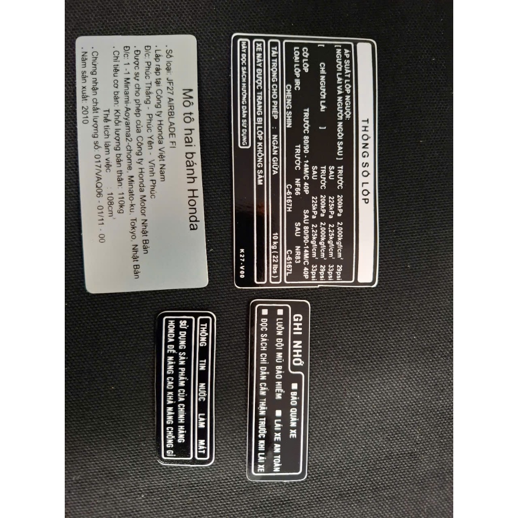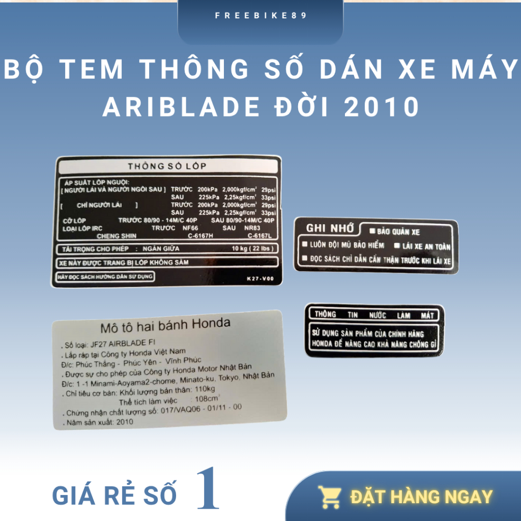 BỘ TEM THÔNG SỐ XE HONDA AIR BLADE ĐỜI 2010