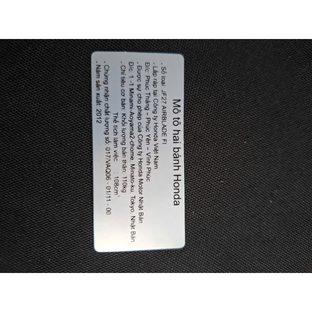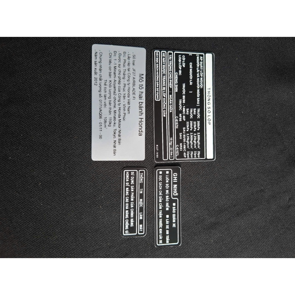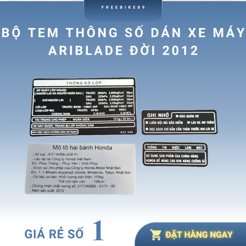 BỘ TEM THÔNG SỐ XE HONDA AIR BLADE ĐỜI 2012