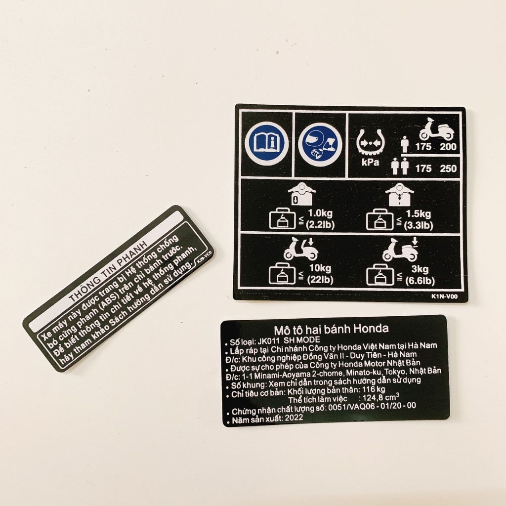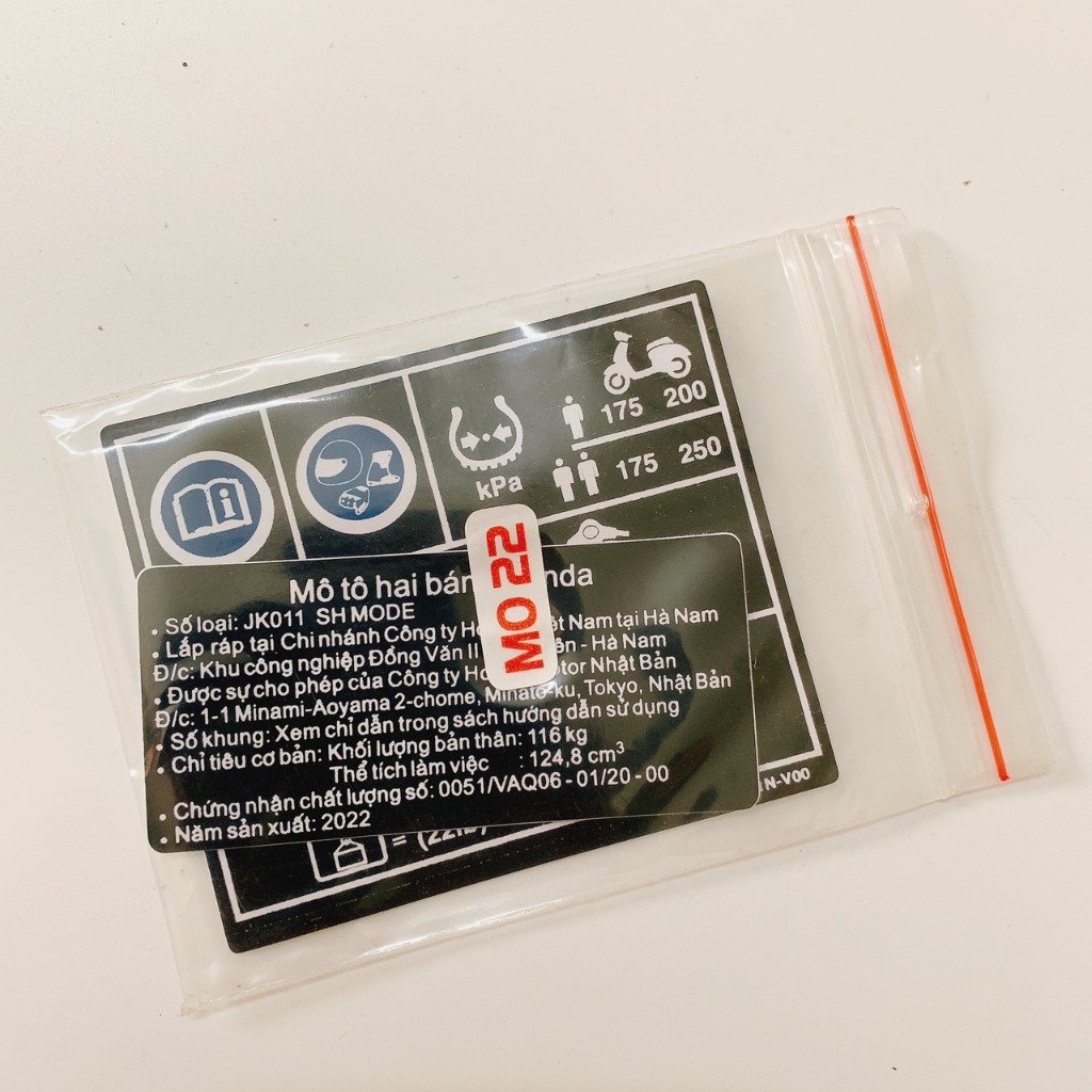 (LỖI LÀ ĐỔI) BỘ TEM THÔNG SỐ XE SH MODE ĐỜI 2022