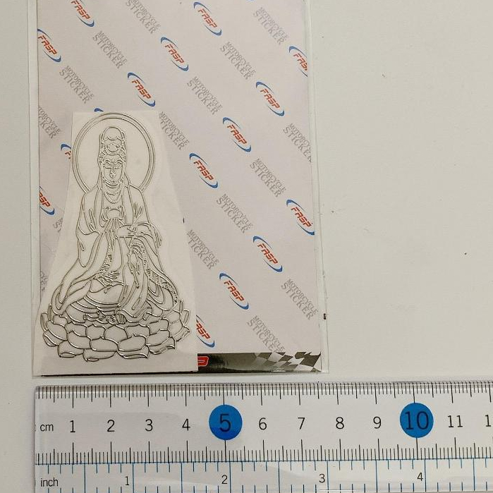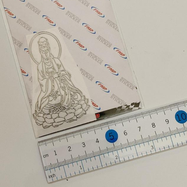 (LỖI LÀ ĐỔI) TEM KIM LOẠI HÌNH PHẬT BÀ QUAN ÂM SÁNG BÓNG MÀU TRẮNG